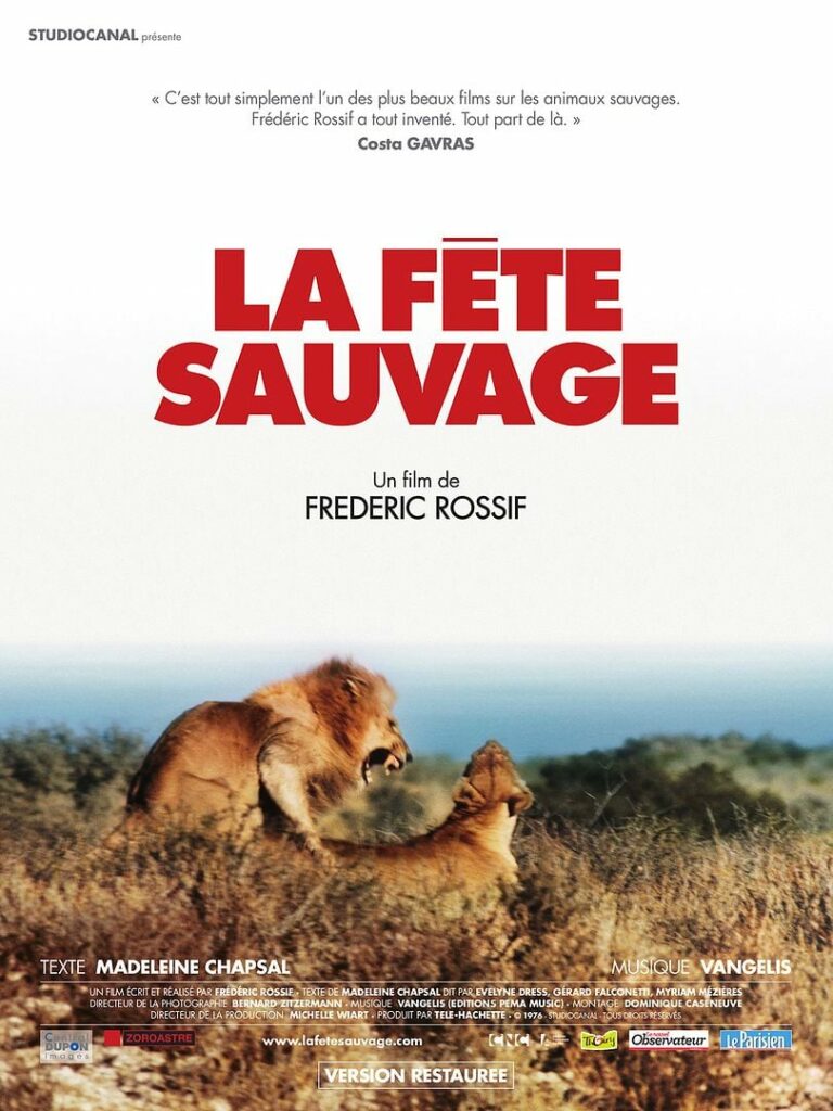 La Fête sauvage c’est quatre ans de tournage aux quatre coins du globe, des déserts africains aux contreforts de l’Himalaya. C’est un film qui a changé à tout jamais notre regard sur les animaux. C’est un poème symphonique singulier qui laisse éclater le génie visionnaire de Rossif, pour qui la prise de vue est un regard, et le montage, un battement de coeur. La musique de Vangelis, continue de célébrer plus de trente cinq ans après l’amour, la mort, le rêve …