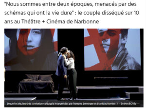 Romane Bohringer dégage une puissance et une humanité bouleversantes, Stanislas Nordey, un mélange de désinvolture et d’ arrogance redoutable. Avec eux, le théâtre démontre son pouvoir de questionnement et de proximité (…).